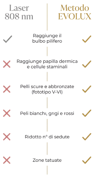 Il metodo Evolux è l'evoluzione dell’epilazione laser tradizionale, per agire su tutti i tipi di pelle e tutti i tipi di pelo.