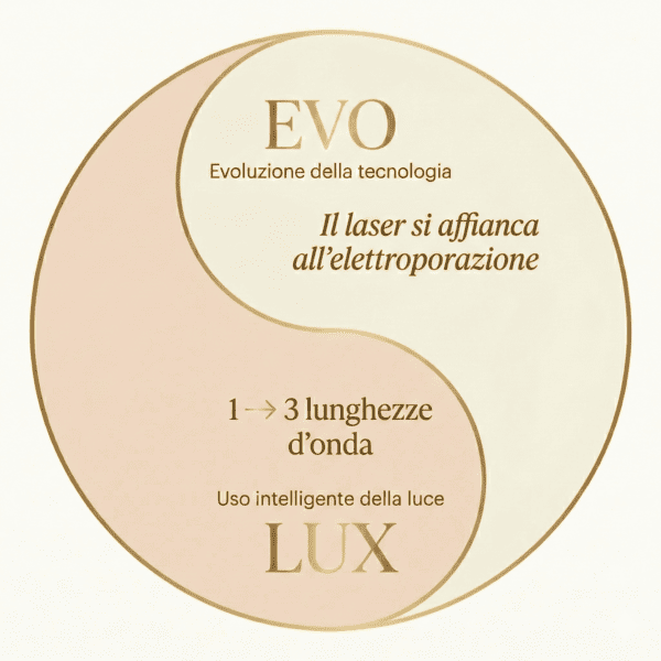 Probabilmente hai fatto un laser a singola lunghezza d’onda (808nm), che ha limiti su certi tipi di pelo e di pelle. Il Metodo EVOLUX lavora su tre lunghezze d’onda e integra l’elettroporazione per i casi in cui il laser da solo non basta. È un approccio diverso, non “un altro laser”.